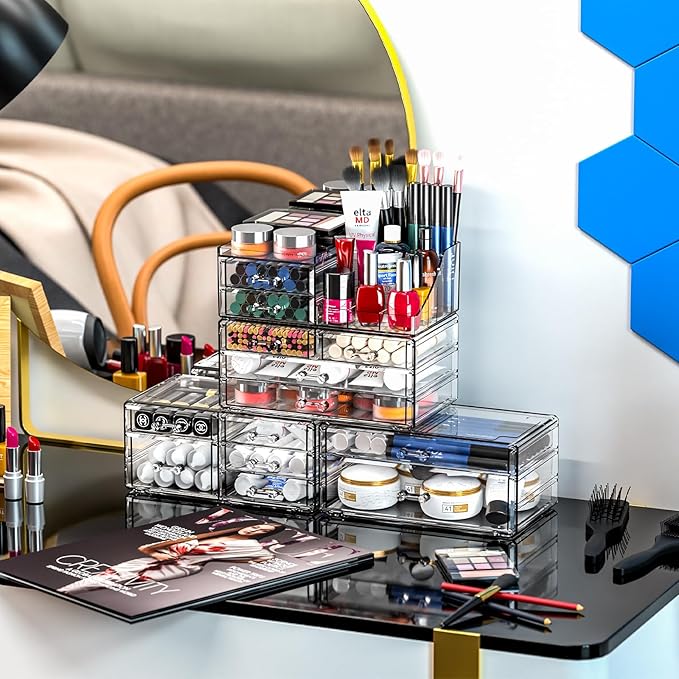 - 【Stackable Drawers Design】-Plastic beauty organizers and storage can stack each other,You can use each drawer separately,on your cosmetic storage needs. This versatile setup adapts to your preferences for maximum convenience