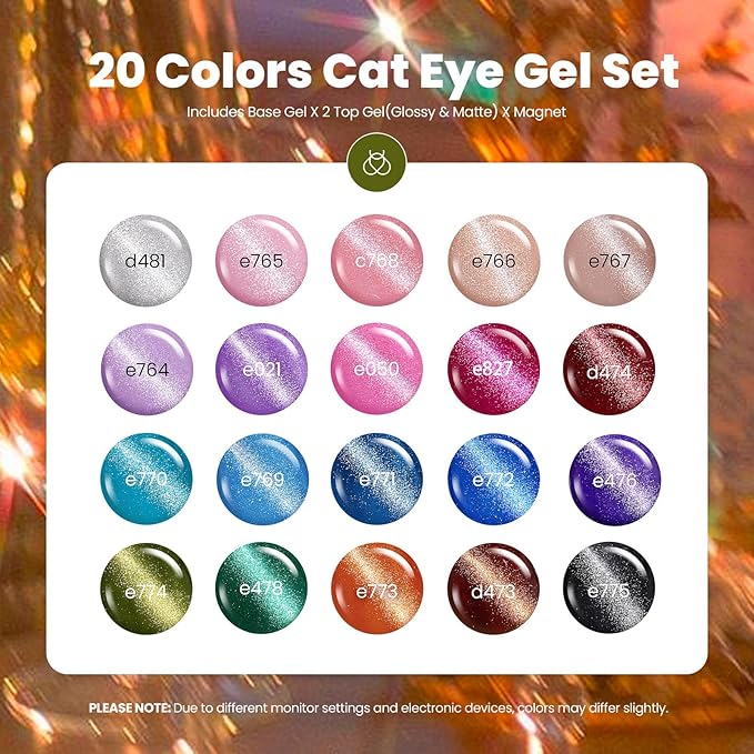 - 【Perfect Gift for Women】If you are looking for birthday, anniversary, Thanksgiving, Christmas gifts for your family or friends, this 20 colors cat eye gel set will be a great choice. Safe and easy for use. Women could enjoy the fun of DIY Nail Design at Home. Perfect beauty gift sets for nail art lovers!