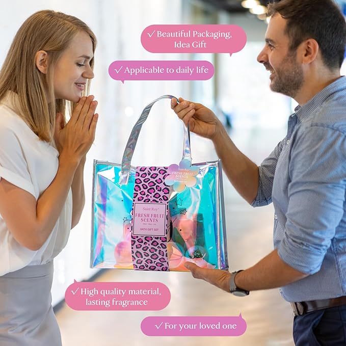 - 【Long-lasting Sweet FRUIT scents Birthday Gifts for gilrs】Bath Gift Set for Mother Infused with strawberry, Grape, Berry scents, these self care gifts for women let you have the fresh scent of the day. IS A PREFECT GIFT: The Shiny beach tote bags could be as a ideas gift for women, bride, ladies, teacher, mom, hostess, mother and friends. It's the present any girl will love! Also, this tote bag can be an adorable way to thank your bridesmaids, hostess, maid of honor, mother of the bride/groom, and guests, for their love and support on your special day