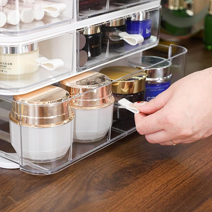 - 【Suitable for Any Scenario】 This clear Drawers makeup organizer is also perfect for storing and organizes makeup palettes, eyeshadows, concealers, powders, nail polish, lotions, perfumes,earring,necklace, makeup brushes and more office supplies