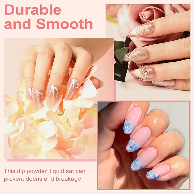 - Durable and Smooth: This dip manicure liquid set resists debris and cracking, providing long-lasting wear. Suitable for most nail dip powder, it offers durability and a smooth finish. Also it can last 2-3 weeks with proper application, minimizing premature peeling.