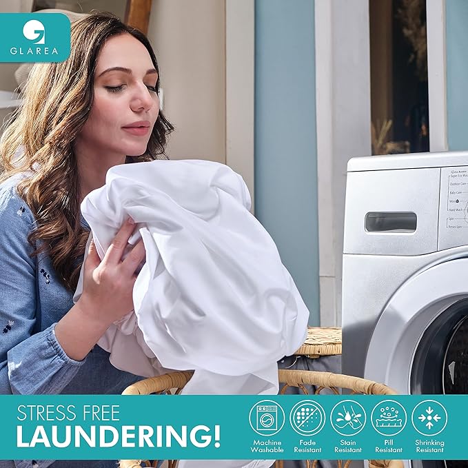 Glarea Microfiber Massage Table Sheet Set 2 Pack with 2 Face Cover, 2 Flat Sheets and 2 Fitted Sheets (White - 2 Sets, Massage Table)
