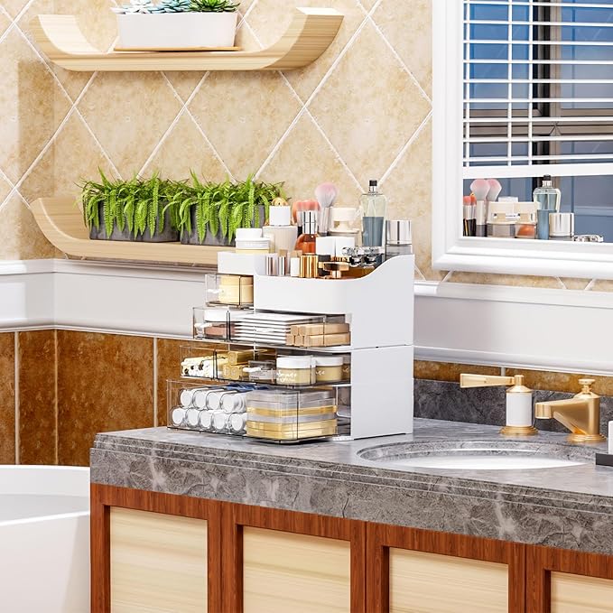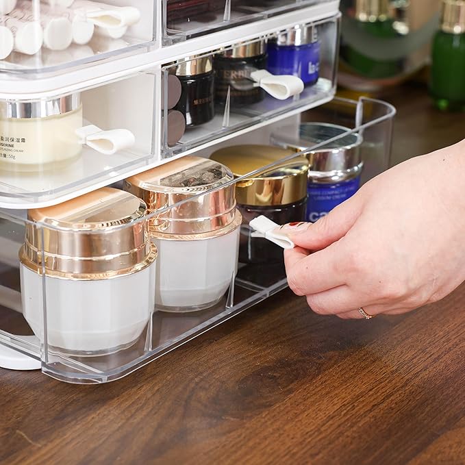 - 【Modern and Accessible】 Fashion White shell With a transparent Drawer design, you can quickly find what you need without rummaging through drawers, saving time during your daily beauty routine