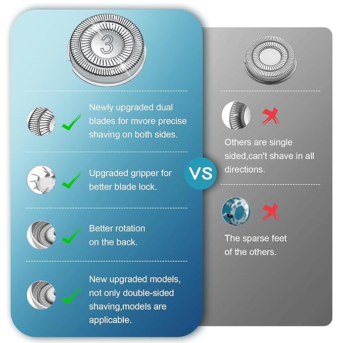 - 【High Precision Cutting System】: The blades compatible with philips SH30 replacement heads are dual precision cutting system with lift and cut technology. 360 degrees without dead ends.