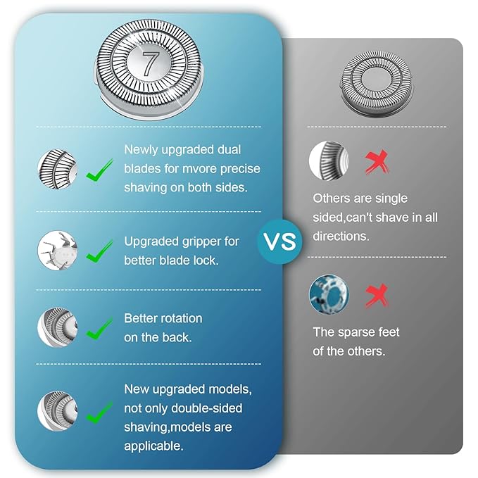 - 【High Precision Cutting System】: The blades compatible with philips SH70/71 replacement heads are dual precision cutting system with lift and cut technology. 360 degrees without dead ends.