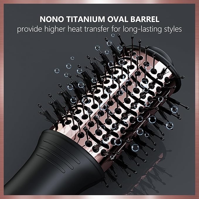 - 【Nano Titanium Technology】The LURA hair brush blow dryer boasts a non-detachable nano titanium coating barrel, which enhances heat transfer to create long-lasting styles. Additionally, its unique oval brush design offers excellent lift at the roots, a smooth body, and beautifully curled ends