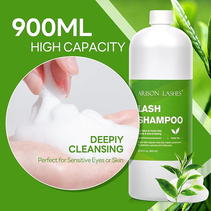 ARISON LASHES Lash Shampoo Large Bottle Eyelash Cleanser 900ML, Professional Lash Shampoo for Lash Extensions Premium Eyelid Foaming Cleanser for Salon and Home Use(tree tea)