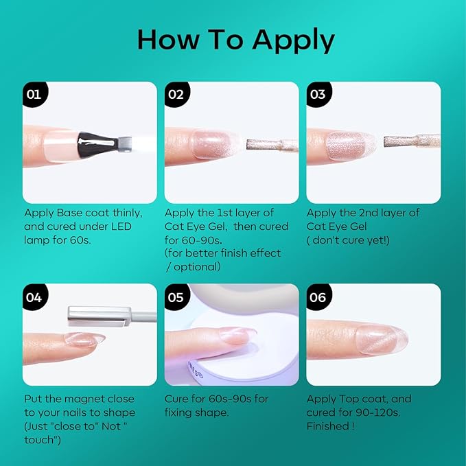 - Shimmery Pigmented Art: For best results, hover the magnet over uncured polish to shape dazzling patterns before curing (60s under lamp). Pro tip: Keep the magnet close but not touching for sharp, vibrant effects every time