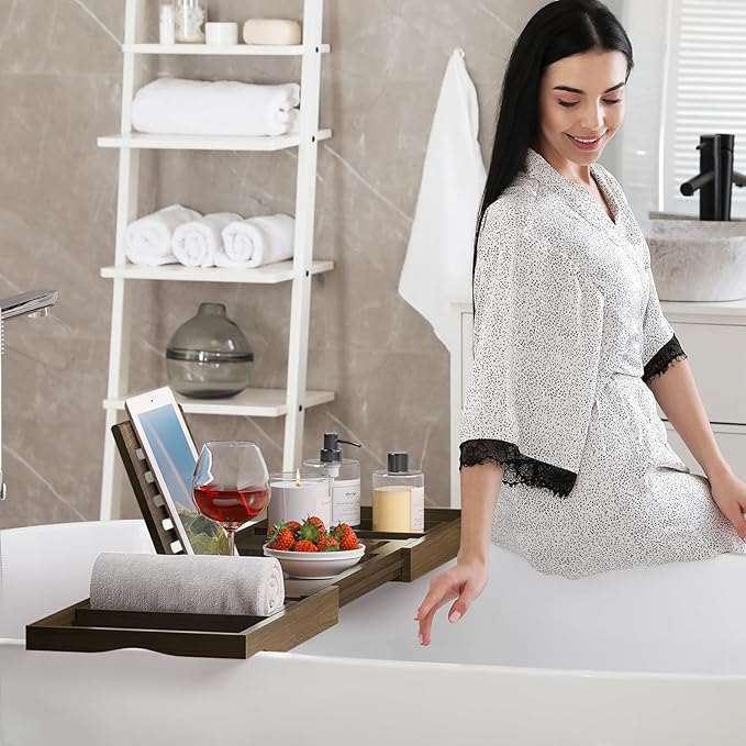 - Expandable Design: Bathtub caddy tray for tub features an expandable design that easily expands from 29.5 inches to 41 inches, fitting most bathtubs and providing you with extra space for your bathroom accessories, creating a home spa for you to relax in after a tiring day. Tub caddy for bathtub allows you to have a luxurious bath time