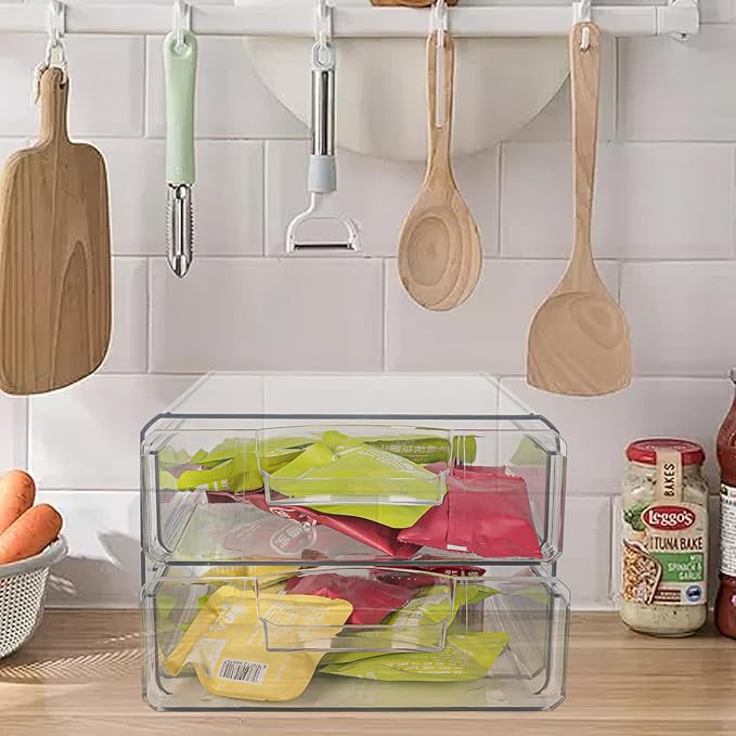 Clear Stackable Storage Drawers,Acrylic Makeup Drawer Organizer with 2 Drawers,Stackable Storage Bins for Skincare,Cosmetics,Beauty Supplies,for Vanity,Bathroom,Kitchen Countertop,Pantry Organization