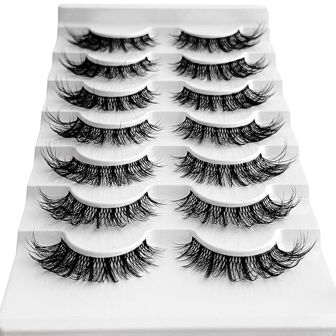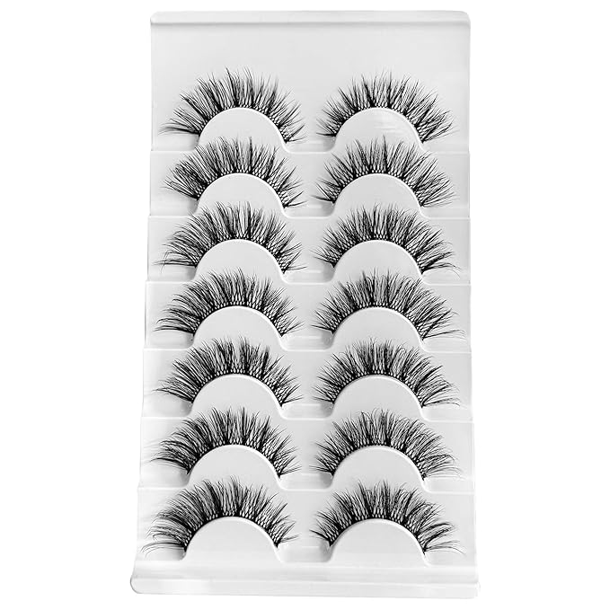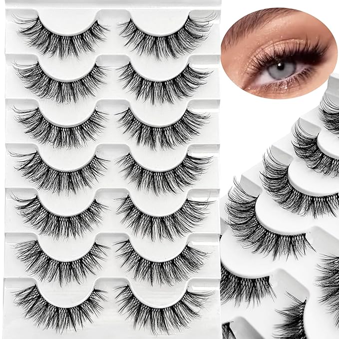 Ninglash Wispy Lashes Strips False Eyelashes Clear Band Natural Look 14mm Faux 3D Mink Lashes 7 Pairs Fluffy Cat Eye Lash Pack