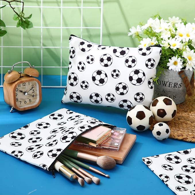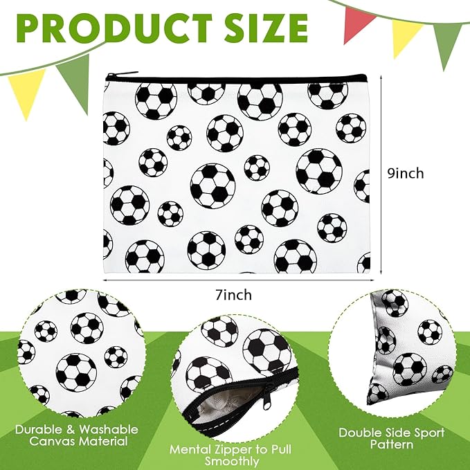 Eccliy 20 Pcs Soccer Makeup Bag Cosmetic Bag Canvas Gifts Sport Soccer Themed Accessories for Girls Toiletry Pouch with Zipper for Women Party Shopping Home Travel, 9 x 7 Inch