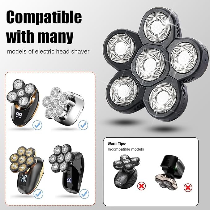 - 6 Head Shaver Replacement Razor Heads for Many Brands Bald Men's Electric Foil Shaver Replacement ,Universal Shaver Replacement Blades for Electric Razor for Men Bald and Face