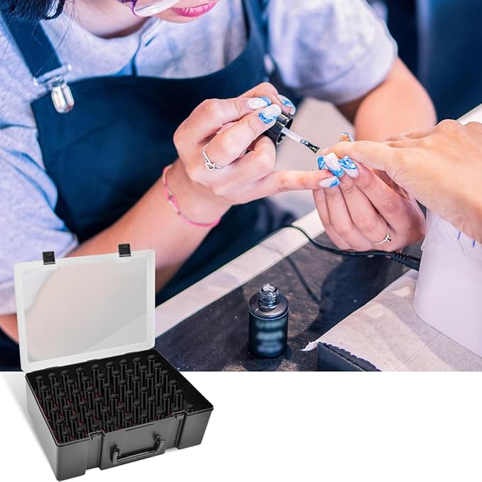 • Light box with large capacity: It can contain up to 54 nail polish bottles, you can put all of your nail gel in the box with maximum size limit of 1.18in*1.18in*3.82in(3cm*3cm*9.7cm).