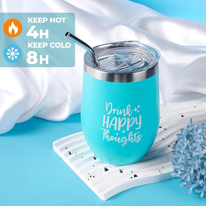 - š SIP & SAVOR MOMENTS OF CALM: This womenās gift set includes a 12oz insulated tumbler that keeps your drink at the perfect temperature, whether youāre winding down with tea or celebrating with wine, or even energizing with a coffee. The "Drink Happy Thought" print on tumblr will make sure she knows how much you care and acts as a great relaxation gifts for women.