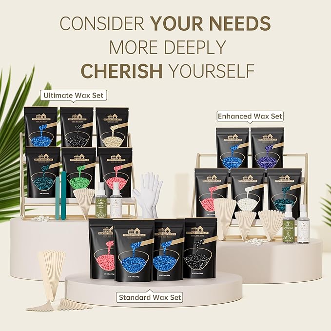 - Every Wax, a New Experience: Dive into a world where every wax is a mood, and every mood is a story. With 3 kinds of exquisite scents (chamomile, blackberry, and rose), our standard wax set offers you 3 kinds waxing experience to you. This comprehensive waxing beads set is suitable for 3 body parts—bikini, legs, and body. So no matter the hair or skin type you are, you have the right wax at your fingertips.