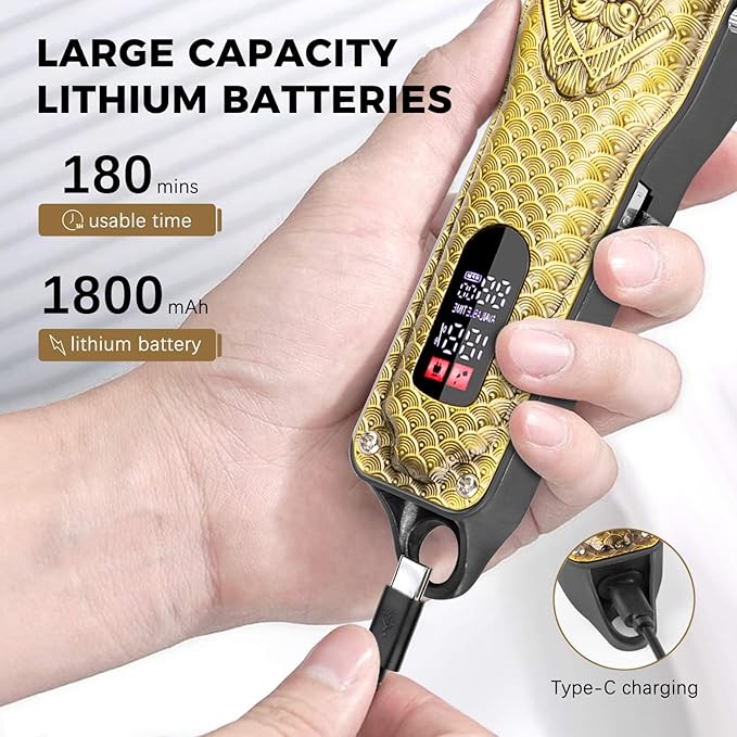- 🌟Lithium-ion Battery: The hair clipper runs for up to three hours on a full charge. The Type-C charging port offers universal compatibility, allowing for flexible and convenient charging or continuous use.