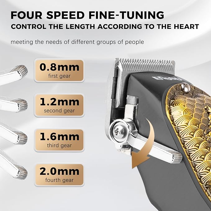 - 🛡️Precision Blades: Our barber clippers feature adjustable blades, providing cutting lengths from 0.8mm to 2.0mm, allowing you to achieve a variety of hairstyles with precise fades and closer cuts.