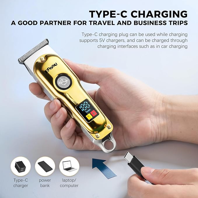 ENSSU Hair Trimmer for Men, Beard Trimmer for Men Professional with Zero-Gapped Steel T-Blade, LED Display, Barber Trimmer for Hair Cutting, Body Grooming