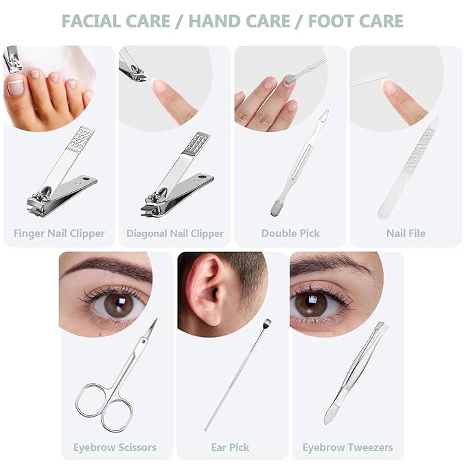 - Stainless Steel Material: our nails kits are made of quality stainless steel, sturdy and strong, hard and durable, easy to cut nails and hair; Also the stainless steel is waterproof and no worry about that it would be rust