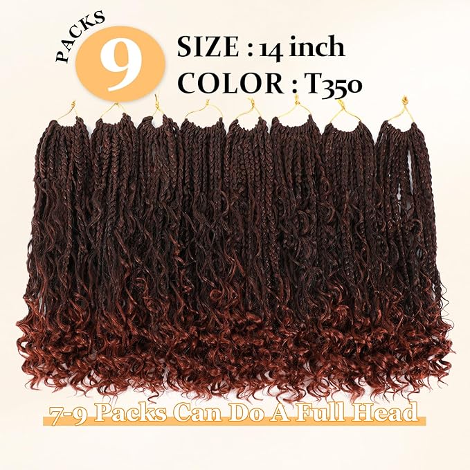 9 Packs Goddess Box Braids Crochet Hair Boho Crochet Box Braids With Curly Ends Crochet Hair For Black Women, 14 Inch Pre Looped Bohemian Crochet Box Braids Hair (14Inch 9 Packs,T350#)