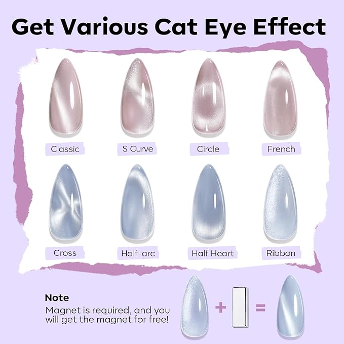 - Gleam Like the Moon: Experience the magic of modelones 6 colors cat eye nail polish. This ultra-shiny, cat eye effect creates a glass-ball shimmer with a silky, satin finish. Perfect for any occasion, the translucent shine is your new go-to for a radiant, multi-dimensional look. Channeling moonlight glow or everyday glam