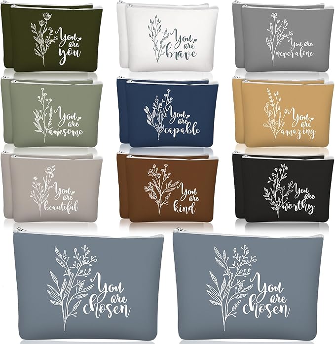 - Motivational and Inspiring: these canvas makeup bags bulk are printed with 10 different encouragement phrases, such as [you are brave], [you are kind], etc., bringing you more confidence; With a combination of boho flower patterns and classic colors, cute, elegant and pretty