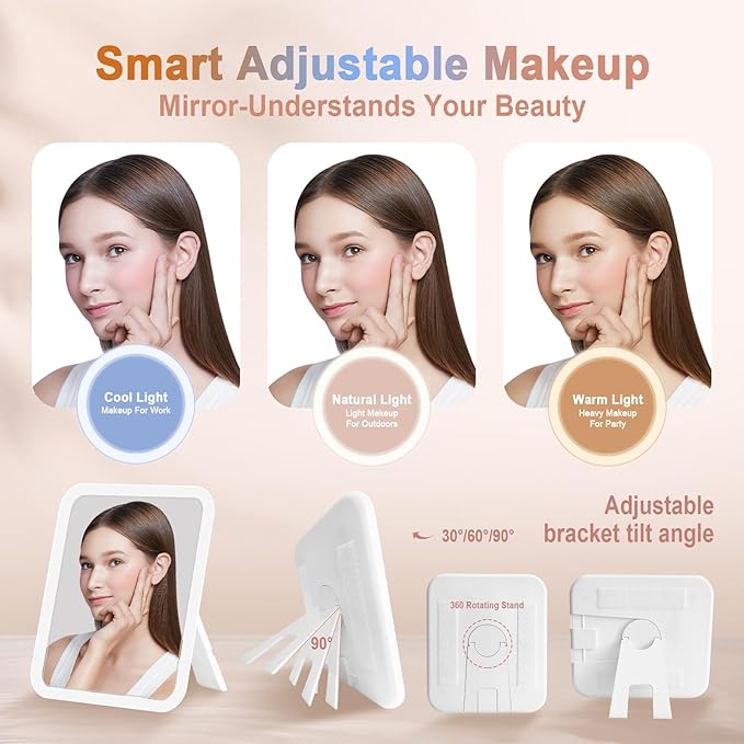 - 360 DEGREE ROTATING MIRROR: The mirror is designed to be flexible and supports 360 degree rotation. No matter from which angle you want to observe your makeup or need to adjust the direction of the mirror, it can be easily realized.