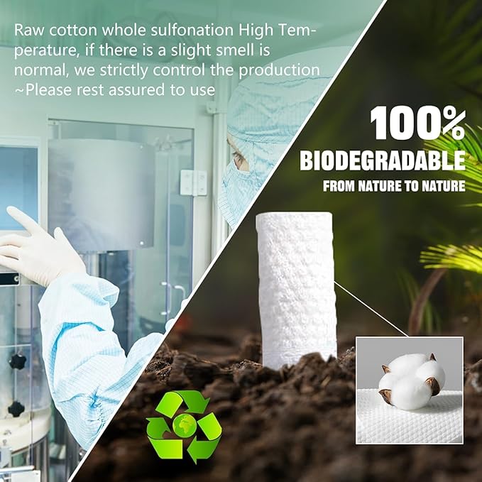 - 【Material & Natural】 100% biodegradable natural plant fiber, safe and friendly. Dry and wet dual uses, wet water does not break, can be reused. Use it to clean countertop after cleaning your face.