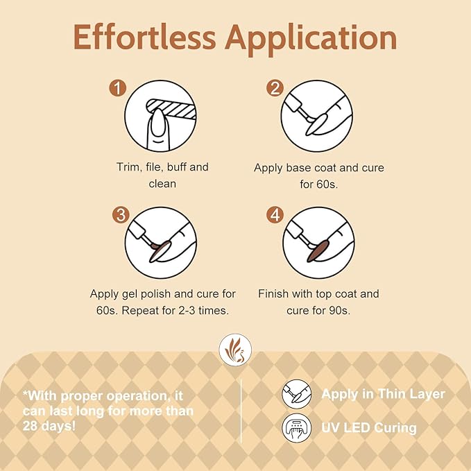 - 【Professional Base & Top Coat – 28-Day Wear】Nail Primer enhances adhesion; 5-in-1 Builder Base strengthens nails for extensions or press-ons.No-wipe glossy & matte top coat ensures chip-free, high-shine finish for up to 28 days.