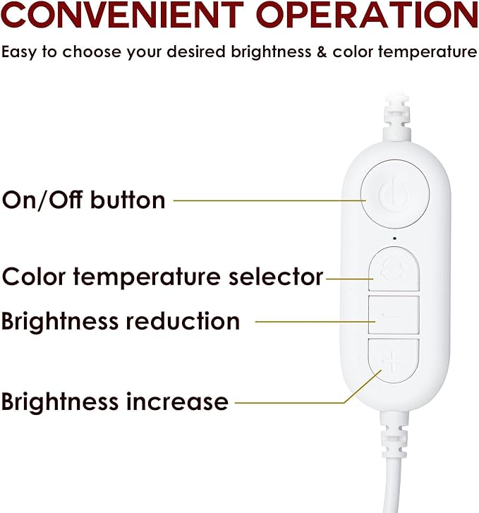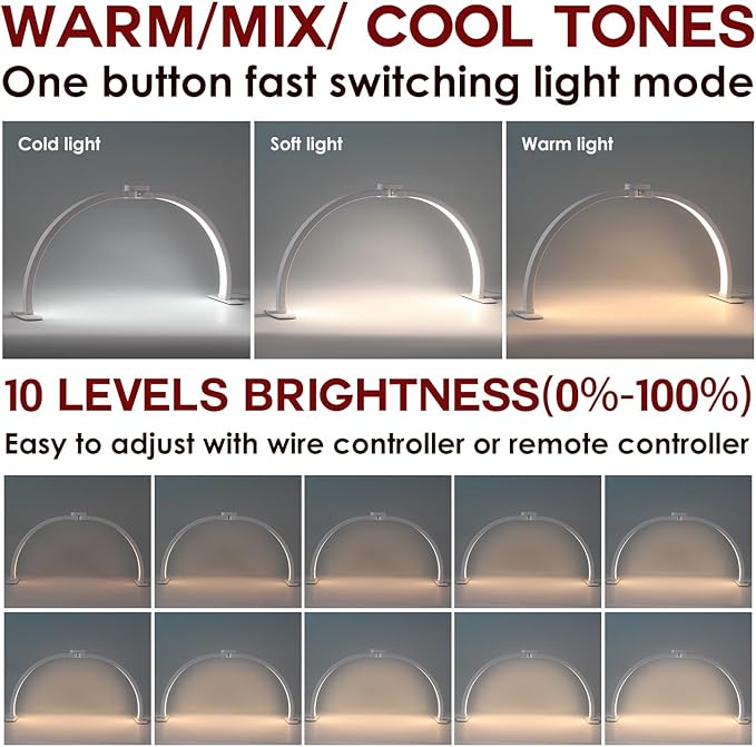 - 3 Lights Setting & Brightness Setting: Super-bright lights for fine and exacting detail work, and nice uniform light at all angles. This half moon light can adjust brightness or color temp(warmth or coolness)to help you see clearly. Protecting your eyes from excessive eye use