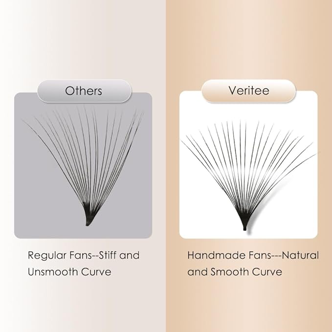 Veritee 1000pcs 20D D Curl Mix9-16 Handmade Pinching Fake False Eye Lash Pre Pro Made Mega Volume Promade Loose Premade Lash Fans Eyelash Extensions