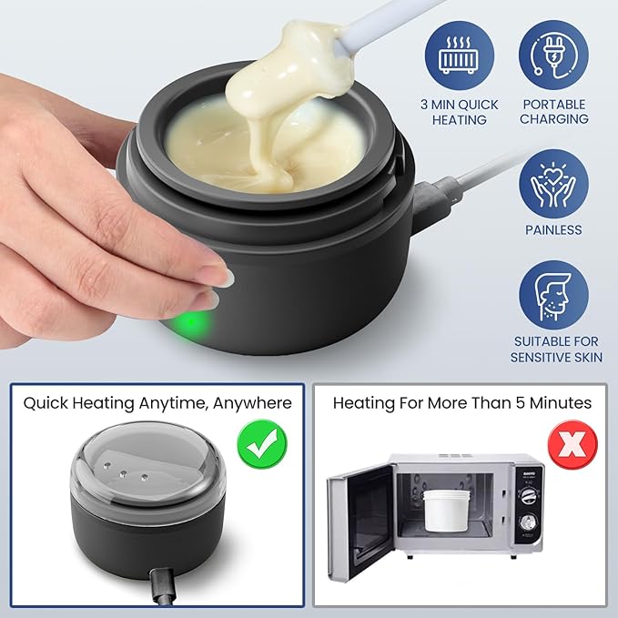 - Say Goodbye to Traditional Microwave or Hot Water Heating: Our ear hair waxing kit is easy to use, it can quickly melt the wax beans within 3 minutes through the socket or USB port, and can maintain an even temperature while connected to the power supply without solidification. Wear ear protectors, dip the wax stick into the warm wax and roll it up, let your partner or yourself insert it shallowly into the ear, pull out within one minutes for maintaining a younger appearance