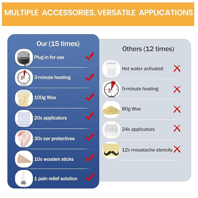 - Suitable for Face Hair Removal: This waxing kit is perfect for removing bothersome ear hair, nose hair, it is also suitable for facial areas such as eyebrows, lip hair, and beards, making it the top choice for those who pursue a well-groomed appearance