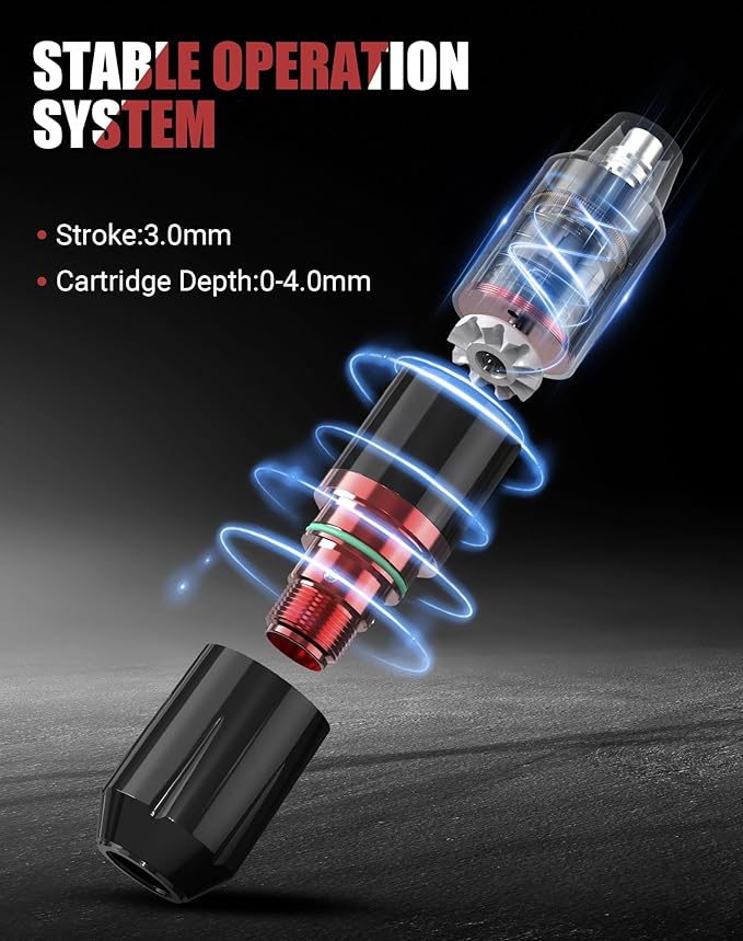 - RHEIN RNP28 Wireless Tattoo Pen Kit: Contain Complete Supplies to Start Your Artist Work,The RNP28 Machine Size(LxH):122mm*28mm,Weight:158g, Stroke:4mm.Compatible with all standard cartridge needles. The RNP28 Can Tattoo Lining and Shading, Permanent Makeup Work.