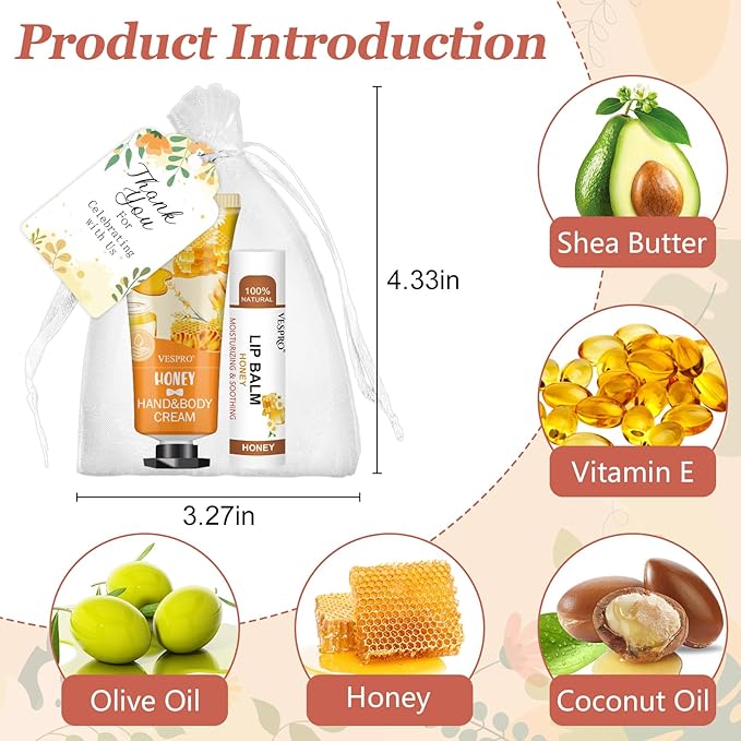 - 【Unique Party Favors for Guests】Our hand cream bulk and lip balm bulk set have 5 different fragrances - Lemons,grapes,peaches,aloe and honey.In addition,5 different colors are perfect for weddings and party,these thank you gifts can be distributed as gratitude gifts to guests and coworkers.