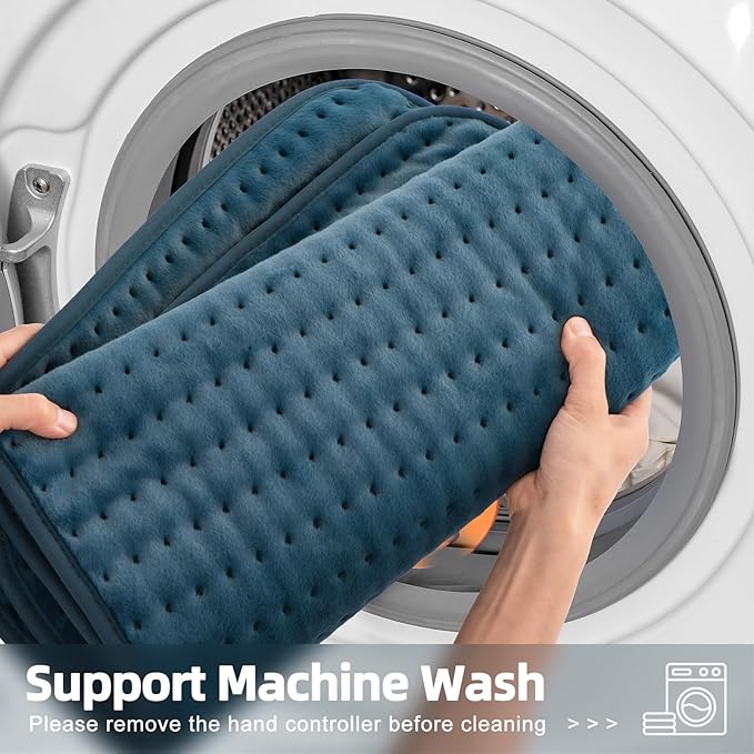 - User-Centric Safety and Care: Designed with your safety in mind, our heating pad includes a 2-hour automatic shut-off to prevent overheating. Its machine-washable fabric allows for easy maintenance—simply remove the hand controller and toss heating pad in the wash, keeping your heating pad fresh and clean with minimal effort