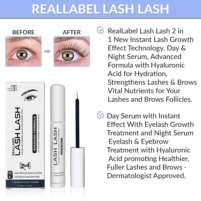 - Dual-Action Lash & Brow Growth: This 2-in-1 eyelash growth serum combines a powerful hyaluronic acid formula to promote longer, fuller, and thicker lashes and brows, making it the ideal lash serum for eyelash growth and a rapid brow eyebrow growth serum