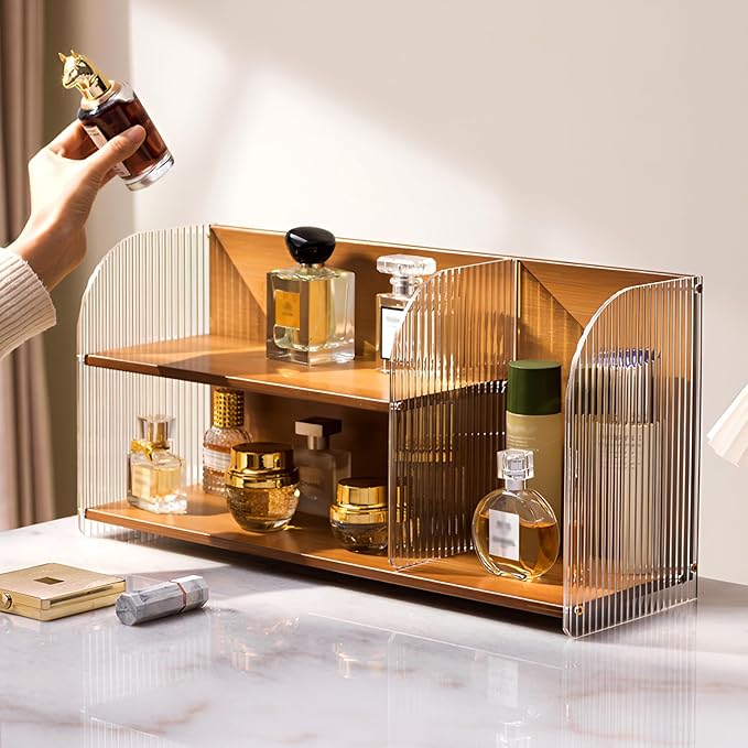 - 【Stylish and Functional】: Our Bamboo Cosmetic Organizer is designed to keep your makeup and skincare essentials neatly organized on your vanity.