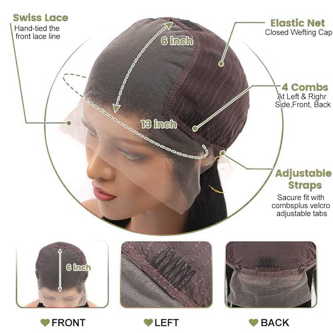 - Straight Frontal Wigs Human Hair Lace Detail: 13x6 Hd Lace Front Wigs Human Hair Pre Plucked, Ear To Ear Transparent Swiss Lace, Natural Hairline With Baby Hair Around, The Lace Area Is Large, Can Make Free Part, Middle Part Or Side Part, So You Can Do Many Hairstyles. Simulated Scalp, Breathable&Durable, Lace Suitable For Most Skins