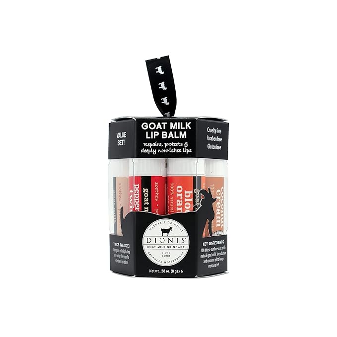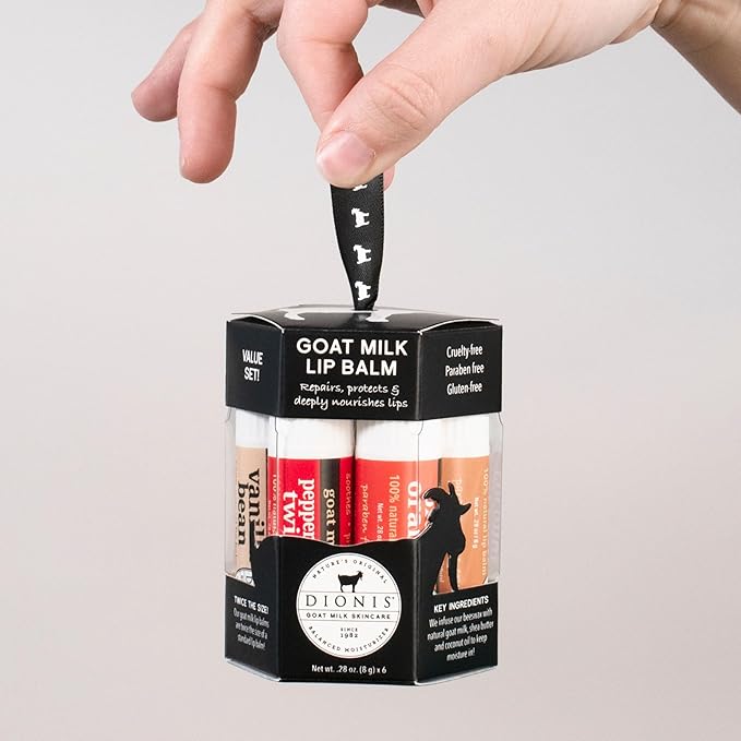 - Give the Gift of Self Care - Our assorted lip balm gift set is a gift that encourages the recipient to indulge in moments of self care, ensuring their lips are well cared for, no matter the weather or season. Dionis Goat Milk Lip Balm is a gift that combines practicality, luxury, and a touch of personalization, making it a versatile and appreciated choice whether you're gifting it for a special occasion, as stocking stuffers, or just as a thoughtful gesture.