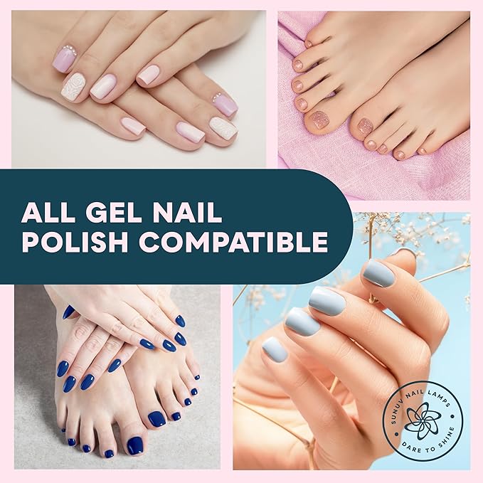 - One Lamp, All Gel Polishes: Our Gel Nail UV Light Lamp plays well with every gel polish type, including base coats, top coats, color gels, hard gels, builder gels, acrylics, and more. Achieve salon-quality perfection right at home.