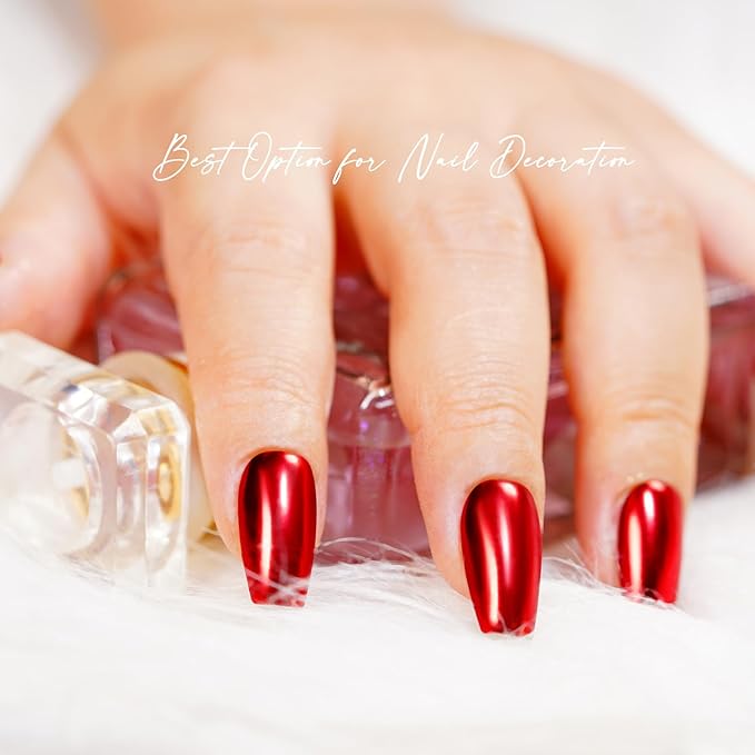- đăPACKAGE CONTENTSă: 6 jars mirror chrome powder (red, purple, brown, blue, silver and gold color) with 6 pcs nail applicator. Each jar chrome powder is enough for more than 100 nails. It needs to be used with no wipe top coat.