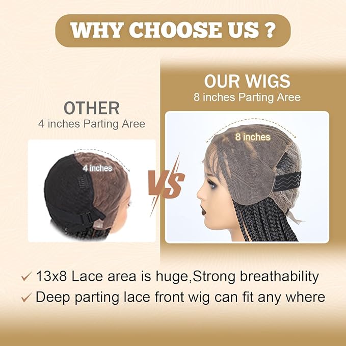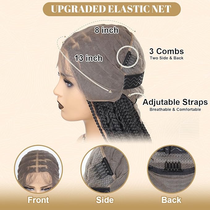 - 【 Box Braids Wigs-Cap Size】:Average Cap Size (22-22.5 Inch) With Adjustable Straps And 3 Combs, Easy To Adjust & Durable, More Comfortable To Wear. As You Like. Box Braids Wigs with Baby Hair Suitable for Any Occasion.