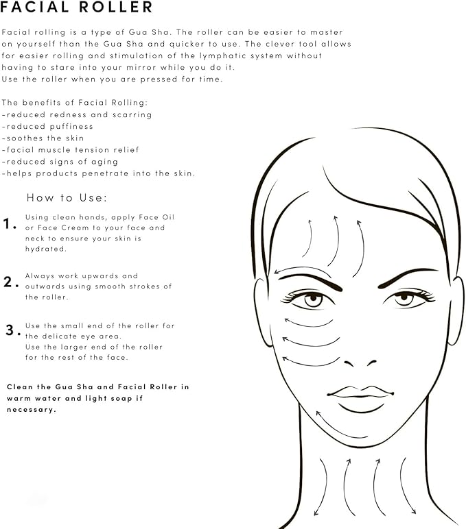 - COMPLETE SKIN CARE KIT: The dual-sided roller has a long side for toning larger areas and a short one for smaller spots. It comes with an obsidian gua sha, and instruction card.
