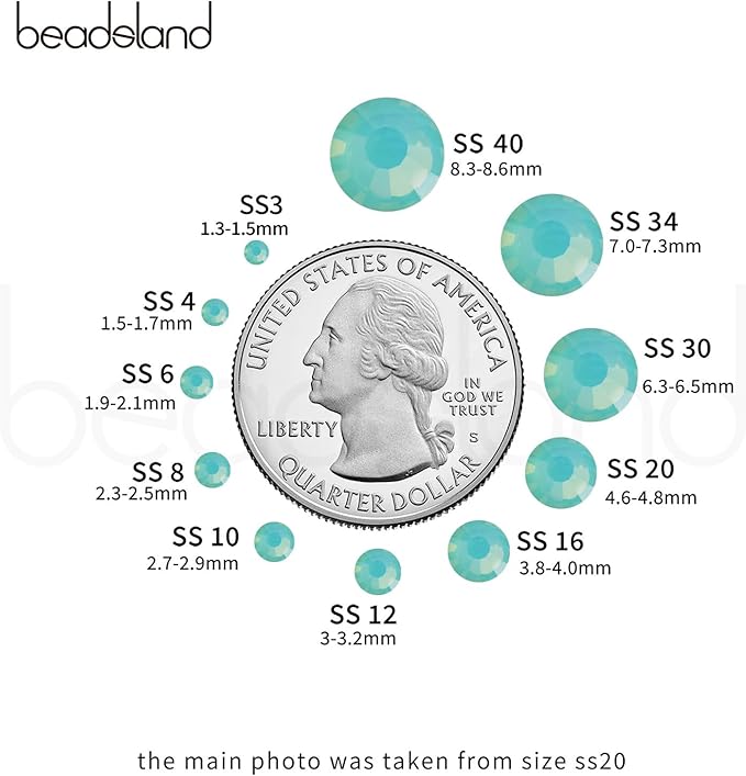 Beadsland 1440pcs Flat Back Crystal Rhinestones Round Gems for Nail Art and Craft Glue Fix, Pacific Opal, SS16, 3.8-4.0mm