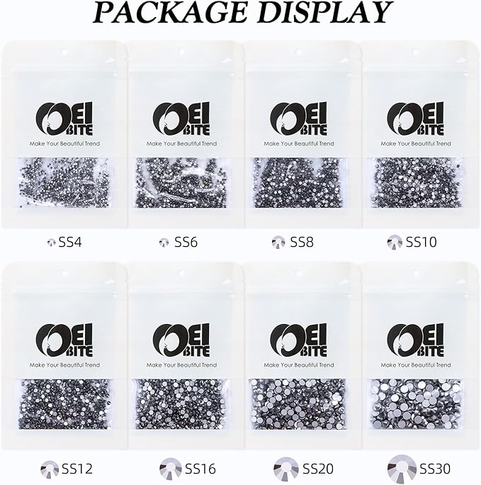 - Product Packaging: Bags packaging SS6 1.9~2.0 MM - 1440 Pcs Black hematite flatback rhinestones
