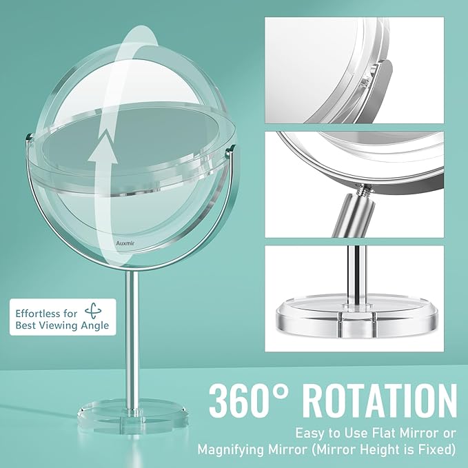 - 360° ROTATION: This makeup mirror can rotate 360°, so it's easy to adjust for the best view. Our tabletop mirror gives a clear reflection from all sides and can be switched smoothly between 1X and 30X magnification