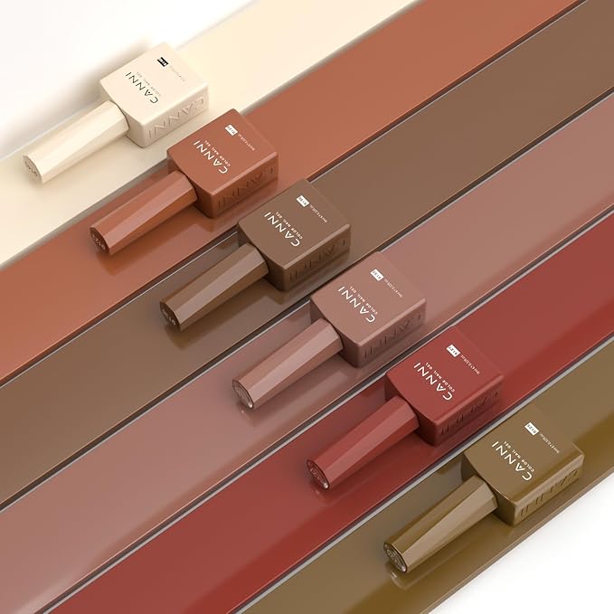 CANNI Brown Nude Gel Nail Polish - 6 Colors 9ML Brown Skin Tone Nude Roasted Chestnuts Beige Khaki Gel Nail Polish Set, Soak off UV LED Nail Gel DIY Manicure Winter Nail Salon