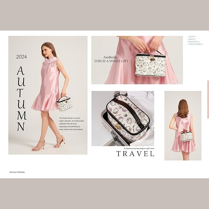 AmBealla Cosmetic Bag Large Makeup Bag Makeup Travel Case with Brush Holder, Canvas Organizer for Women, Toiletry Bag for Skincare & Beauty Tools Sweet Cute for Girls